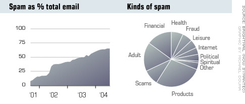 Το spam ξεκινά να λαμβάνει "τρομακτικές" διαστάσεις από το 2002 και έπειτα. Το ακόλουθο γράφημα δείχνει την δραματική αύξηση των spams και την τυπική θεματολογία τους.